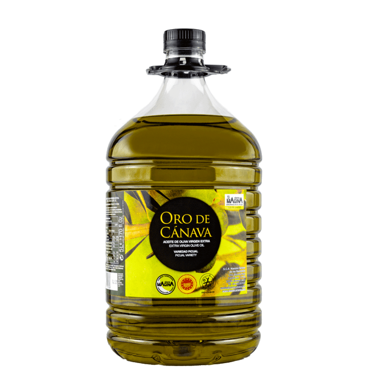 Descubre la calidad excepcional del AOVE Oro de Cánava en su práctico formato de 5L, ideal para quienes buscan un aceite de oliva virgen extra Picual de alta gama.