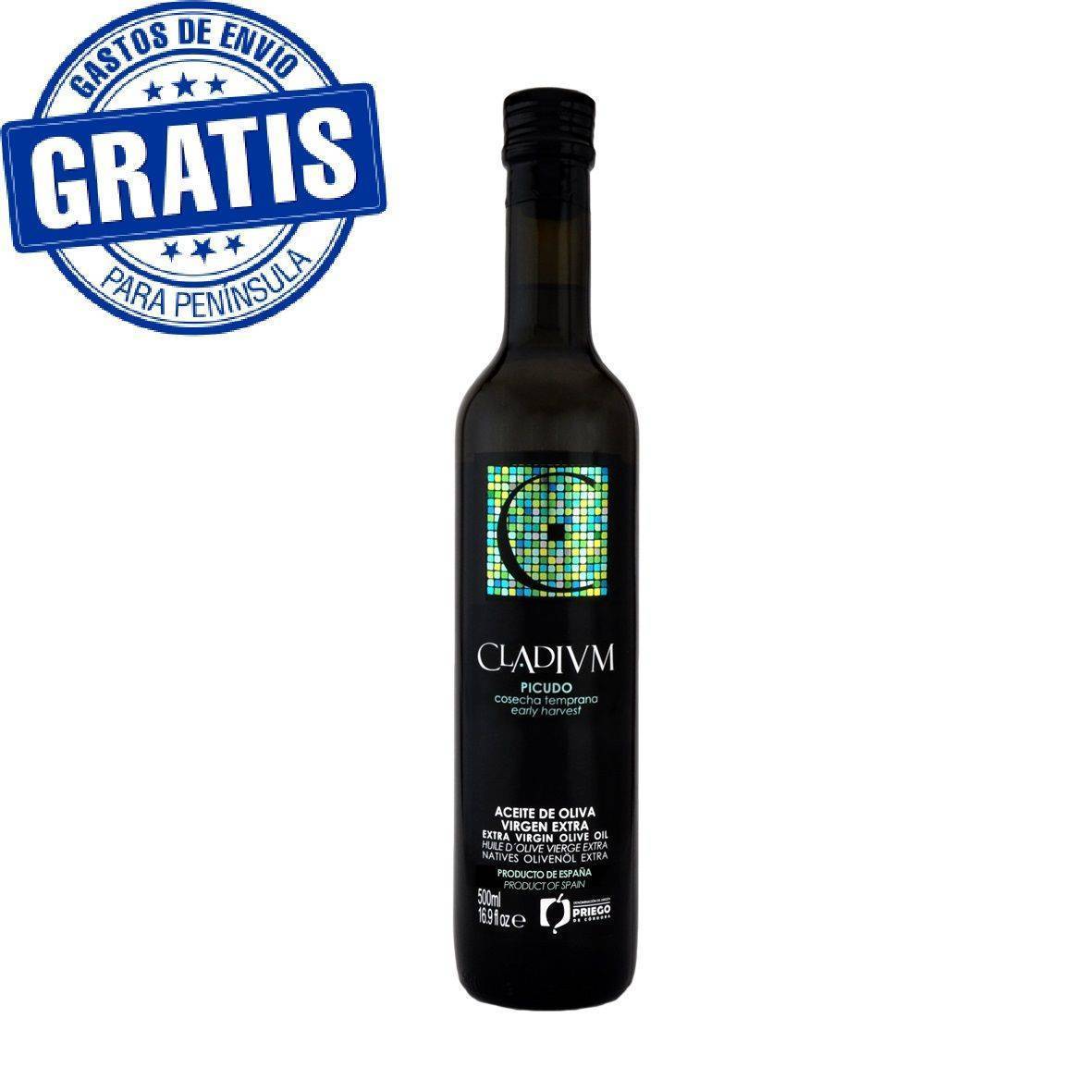 Aceite de Oliva Virgen Extra Cladium. D.O.P. Priego de Córdoba. Cosecha temprana. Variedad picudo.