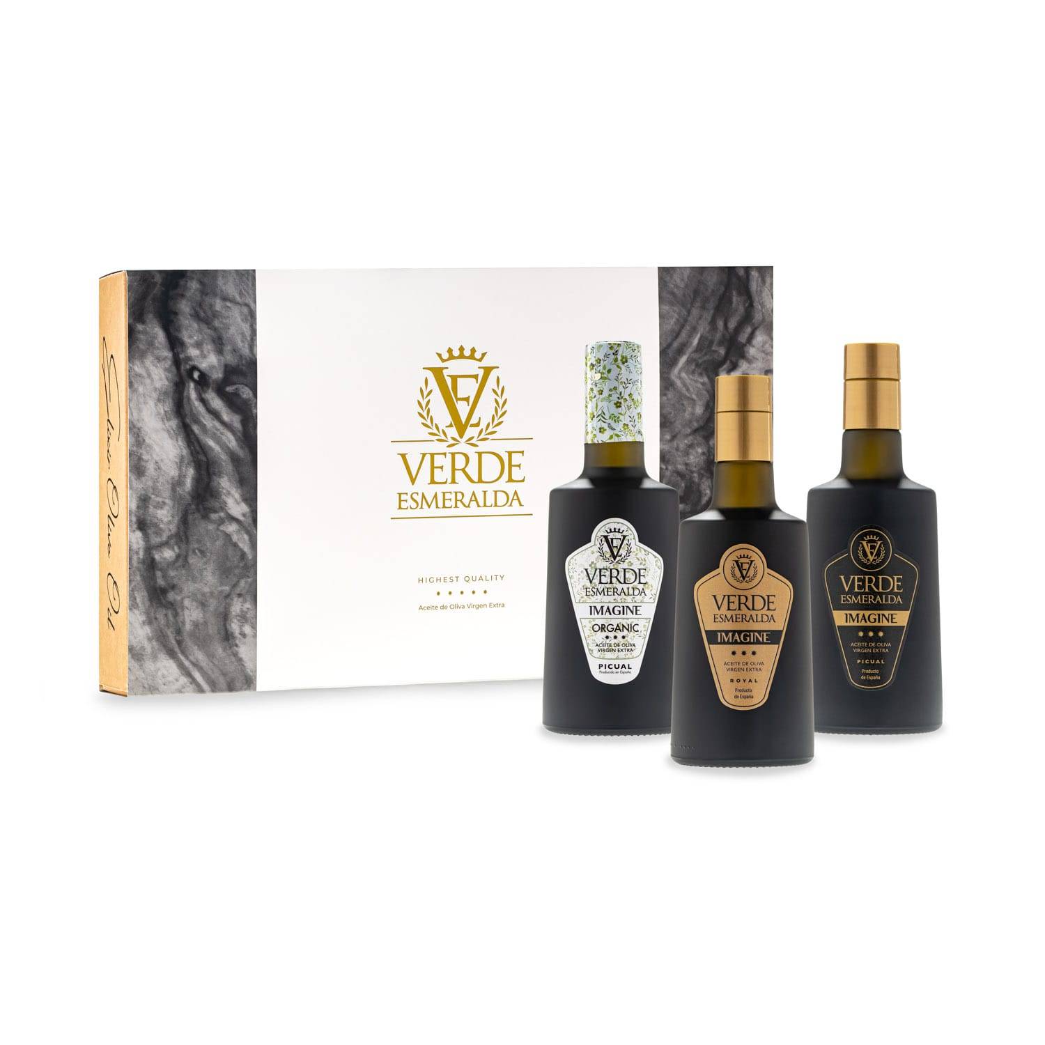 Estuche Regalo Gama Imagine | 3 Botellas de 500 ml | Variedades Picual, Royal y Ecológico